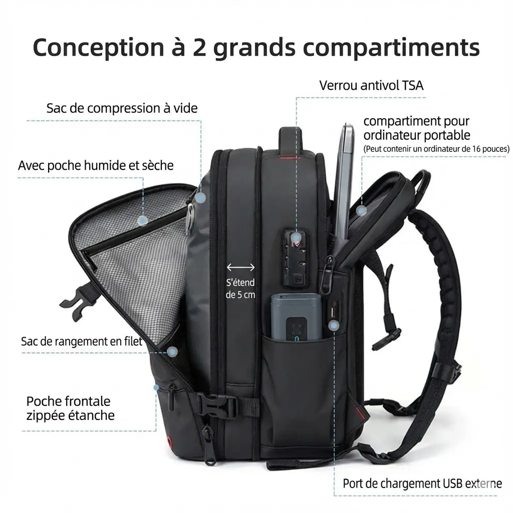 Fini les tracas liés au manque d'espace et à la protection de vos appareils lors de vos déplacements ! Découvrez le sac à dos de voyage révolutionnaire conçu pour l'explorateur moderne. Doté d'une pompe portable astucieuse, ce sac à dos vous permet d'optimiser chaque recoin : compressez vos vêtements pour gagner un volume précieux ou renforcez la sécurité de votre équipement. Le compartiment dédié à l'ordinateur portable, combiné à cette innovation, garantit que votre technologie voyage en toute tranquillité. Profitez d'une grande capacité (36-55 litres) et d'une organisation interne exemplaire pour emporter tout le nécessaire sans compromis sur la légèreté ou la sécurité de votre précieux portable.